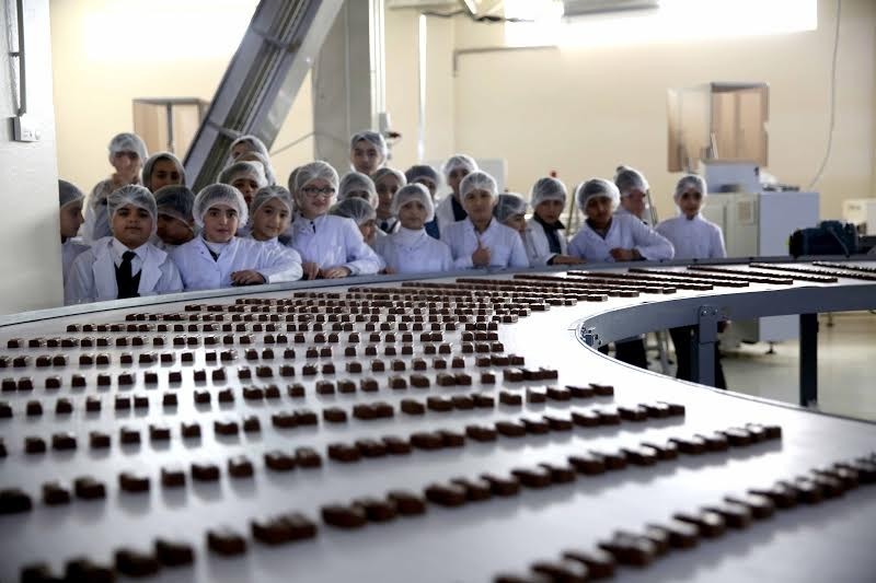 Everyone is interested in getting to know the process of making chocolates and has been organizing free excursions for schoolchildren for many years. During the excursion, schoolchildren and students are shown a short film about the history of chocolate, about technology, then detailed information about the safety rules at the entrance to the production area is provided. All are provided with special clothing in accordance with the rules of hygiene. After that, the employees of the Factory familiarize the participants of the excursion in detail with the equipment and the production process, as well as create conditions for tasting the products on the spot. At the end of the tour, the participants of the tour are presented with the products of the Ulduz Chocolate Factory.